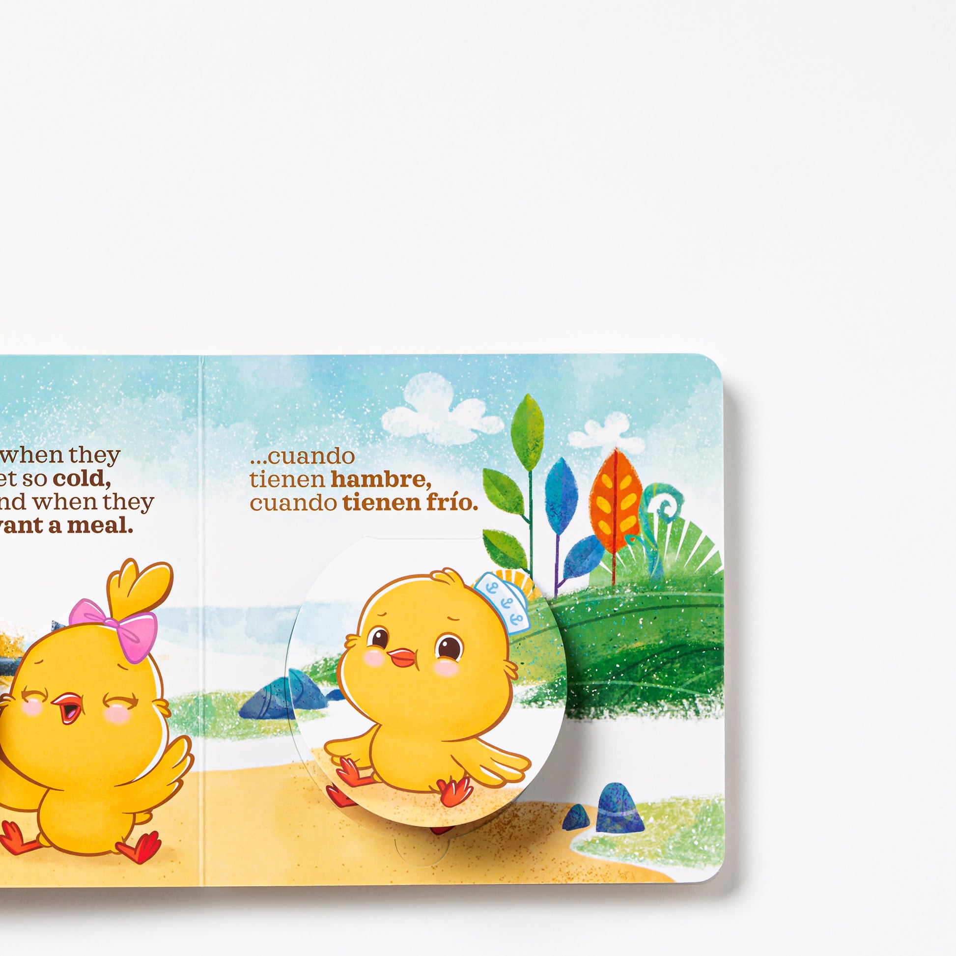 - English and Spanish on opposite pages to learn two languages at once.